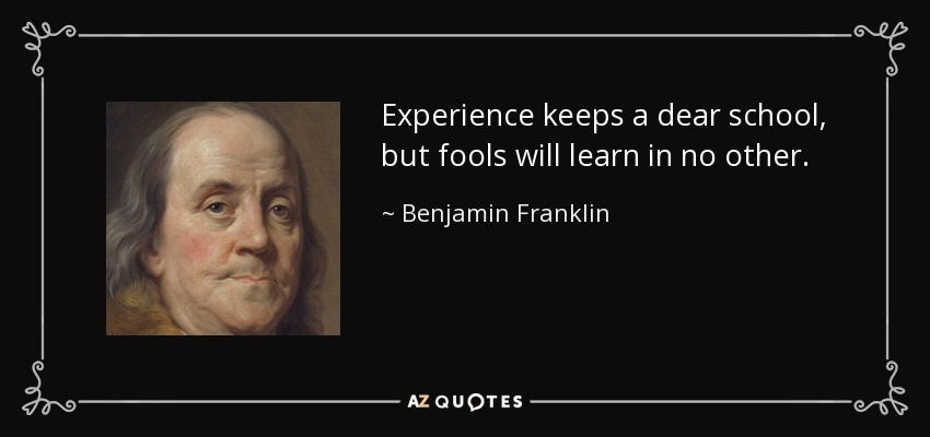 Wisdom before experience is only words; wisdom after experience is of no avail.