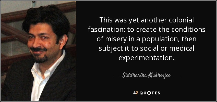This was yet another colonial fascination: to create the conditions of misery in a population, then subject it to social or medical experimentation.