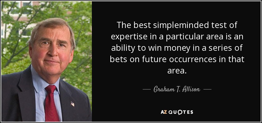 The best simpleminded test of expertise in a particular area is an ability to win money in a series of bets on future occurrences in that area.