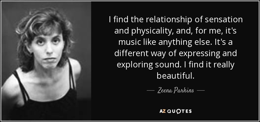 I find the relationship of sensation and physicality, and, for me, it's music like anything else. It's a different way of expressing and exploring sound. I find it really beautiful.