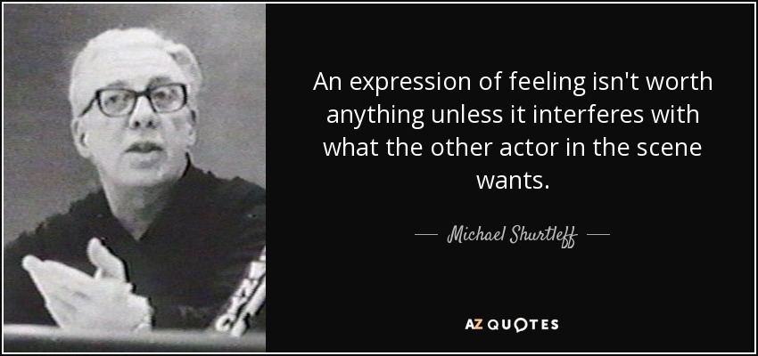 An expression of feeling isn't worth anything unless it interferes with what the other actor in the scene wants.
