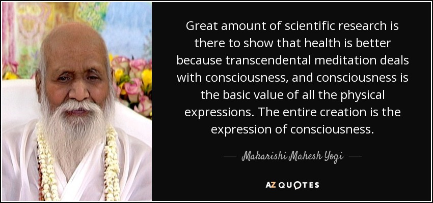 Great amount of scientific research is there to show that health is better because transcendental meditation deals with consciousness, and consciousness is the basic value of all the physical expressions. The entire creation is the expression of consciousness.