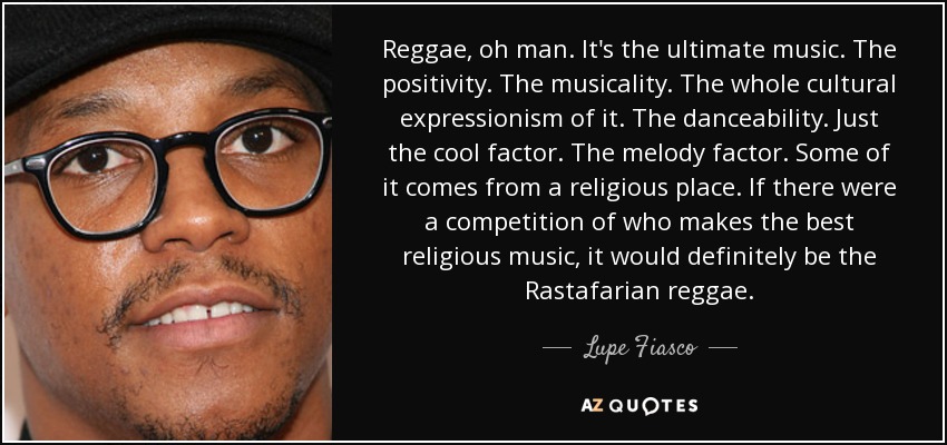 Reggae, oh man. It's the ultimate music. The positivity. The musicality. The whole cultural expressionism of it. The danceability. Just the cool factor. The melody factor. Some of it comes from a religious place. If there were a competition of who makes the best religious music, it would definitely be the Rastafarian reggae.