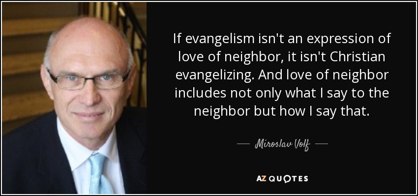 If evangelism isn't an expression of love of neighbor, it isn't Christian evangelizing. And love of neighbor includes not only what I say to the neighbor but how I say that.