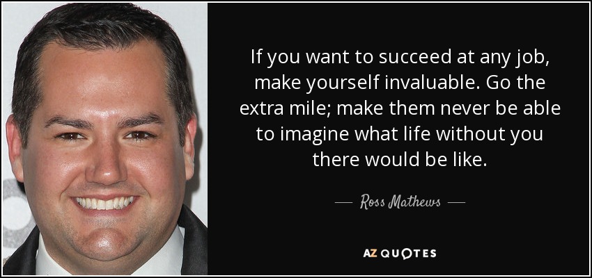 If you want to succeed at any job, make yourself invaluable. Go the extra mile; make them never be able to imagine what life without you there would be like.