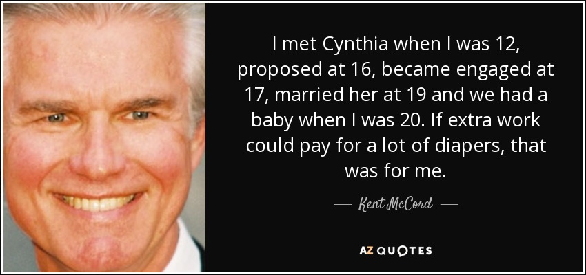 I met Cynthia when I was 12, proposed at 16, became engaged at 17, married her at 19 and we had a baby when I was 20. If extra work could pay for a lot of diapers, that was for me.