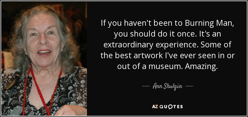 If you haven't been to Burning Man, you should do it once. It's an extraordinary experience. Some of the best artwork I've ever seen in or out of a museum. Amazing.