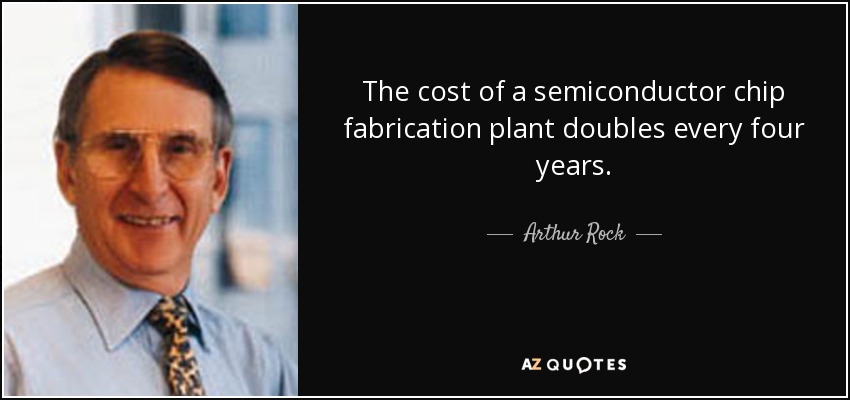 The cost of a semiconductor chip fabrication plant doubles every four years.