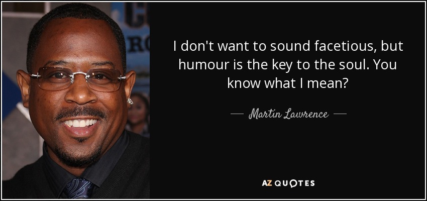 I don't want to sound facetious, but humour is the key to the soul. You know what I mean?