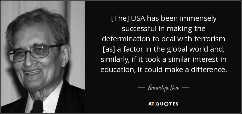 [The] USA has been immensely successful in making the determination to deal with terrorism [as] a factor in the global world and, similarly, if it took a similar interest in education, it could make a difference.