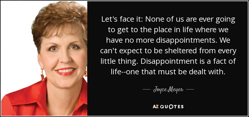 Let's face it: None of us are ever going to get to the place in life where we have no more disappointments. We can't expect to be sheltered from every little thing. Disappointment is a fact of life--one that must be dealt with.