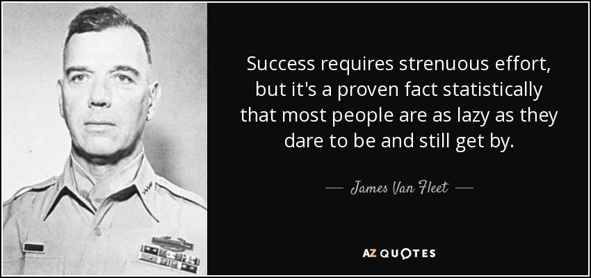 Success requires strenuous effort, but it's a proven fact statistically that most people are as lazy as they dare to be and still get by.