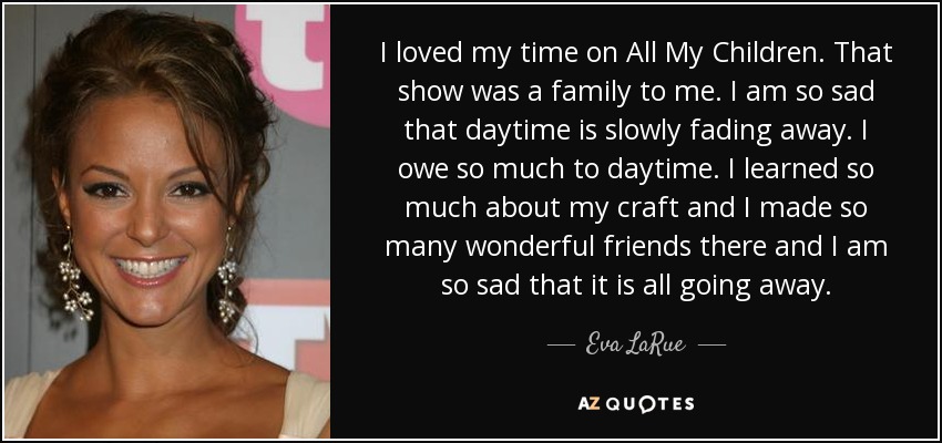I loved my time on All My Children. That show was a family to me. I am so sad that daytime is slowly fading away. I owe so much to daytime. I learned so much about my craft and I made so many wonderful friends there and I am so sad that it is all going away.