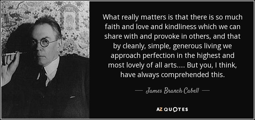 What really matters is that there is so much faith and love and kindliness which we can share with and provoke in others, and that by cleanly, simple, generous living we approach perfection in the highest and most lovely of all arts. . . . But you, I think, have always comprehended this.