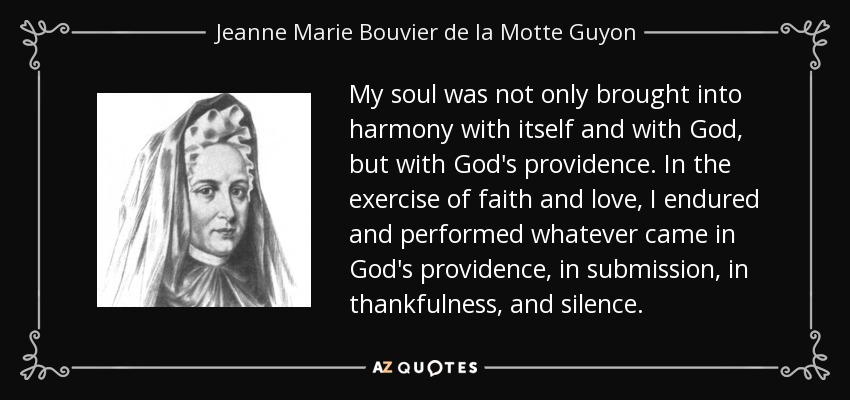 My soul was not only brought into harmony with itself and with God, but with God's providence. In the exercise of faith and love, I endured and performed whatever came in God's providence, in submission, in thankfulness, and silence.