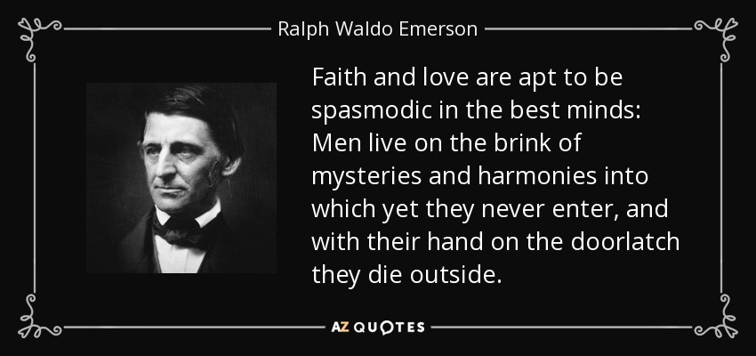 Faith and love are apt to be spasmodic in the best minds: Men live on the brink of mysteries and harmonies into which yet they never enter, and with their hand on the doorlatch they die outside.