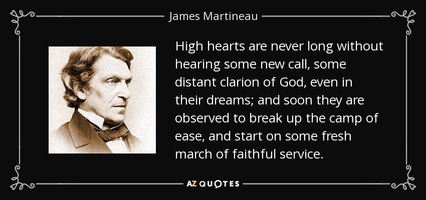 High hearts are never long without hearing some new call, some distant clarion of God, even in their dreams; and soon they are observed to break up the camp of ease, and start on some fresh march of faithful service.