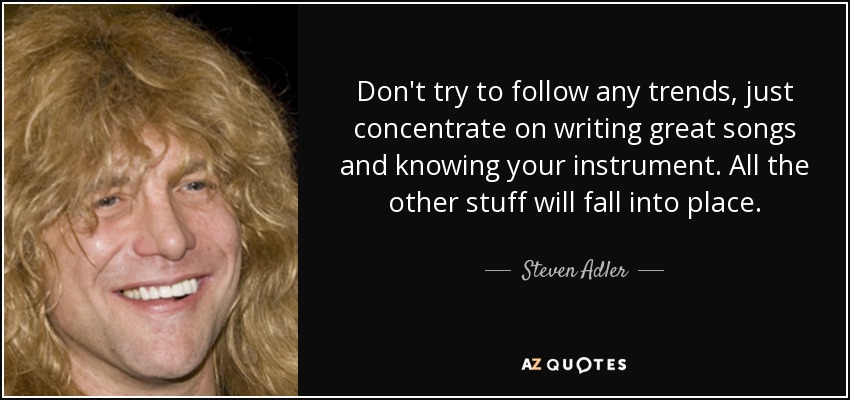 Don't try to follow any trends, just concentrate on writing great songs and knowing your instrument. All the other stuff will fall into place.