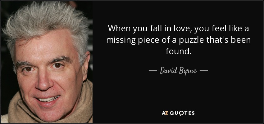 When you fall in love, you feel like a missing piece of a puzzle that's been found.