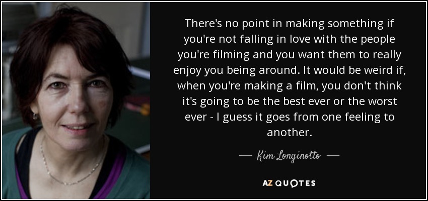 There's no point in making something if you're not falling in love with the people you're filming and you want them to really enjoy you being around. It would be weird if, when you're making a film, you don't think it's going to be the best ever or the worst ever - I guess it goes from one feeling to another.