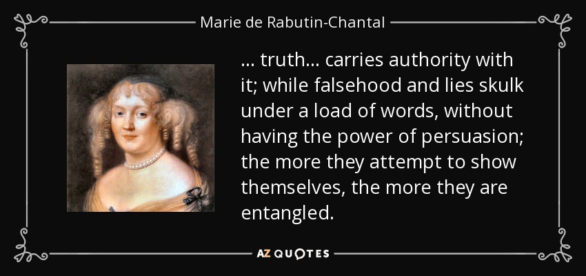 ... truth ... carries authority with it; while falsehood and lies skulk under a load of words, without having the power of persuasion; the more they attempt to show themselves, the more they are entangled.