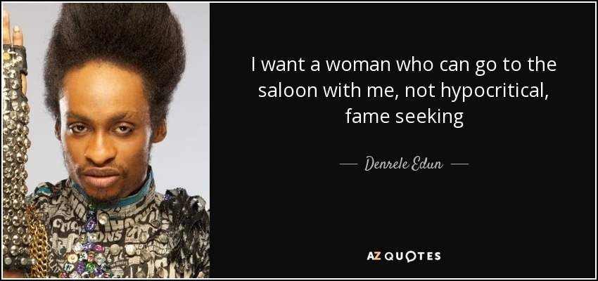 I want a woman who can go to the saloon with me, not hypocritical, fame seeking