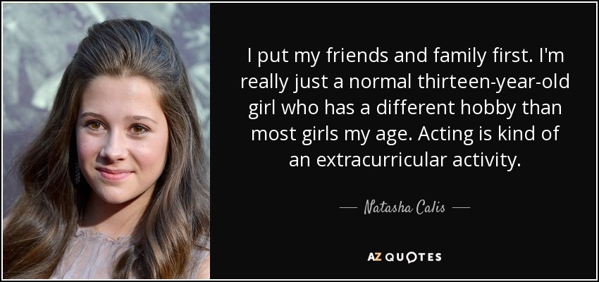 I put my friends and family first. I'm really just a normal thirteen-year-old girl who has a different hobby than most girls my age. Acting is kind of an extracurricular activity.