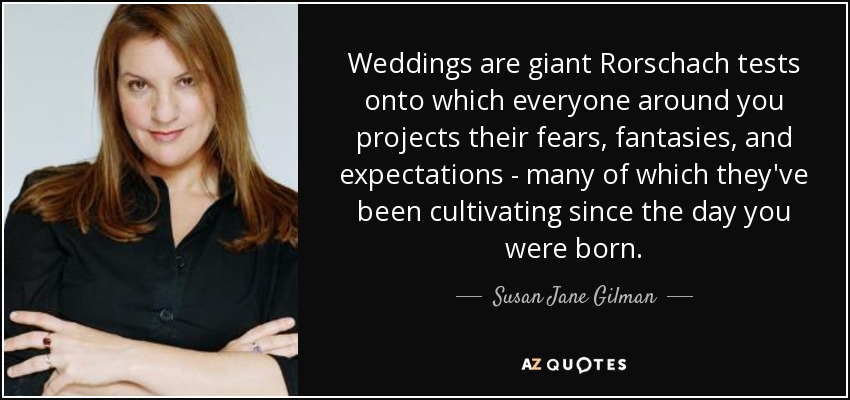 Weddings are giant Rorschach tests onto which everyone around you projects their fears, fantasies, and expectations - many of which they've been cultivating since the day you were born.