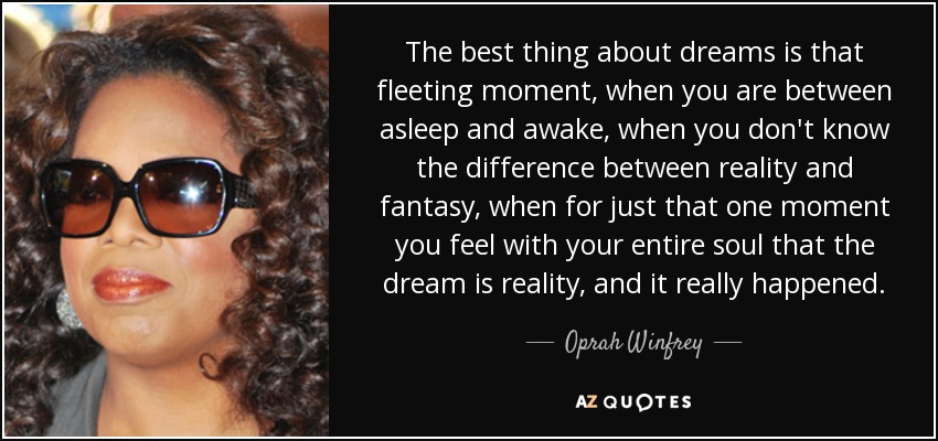 The best thing about dreams is that fleeting moment, when you are between asleep and awake, when you don't know the difference between reality and fantasy, when for just that one moment you feel with your entire soul that the dream is reality, and it really happened.