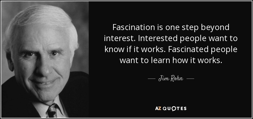 Fascination is one step beyond interest. Interested people want to know if it works. Fascinated people want to learn how it works.
