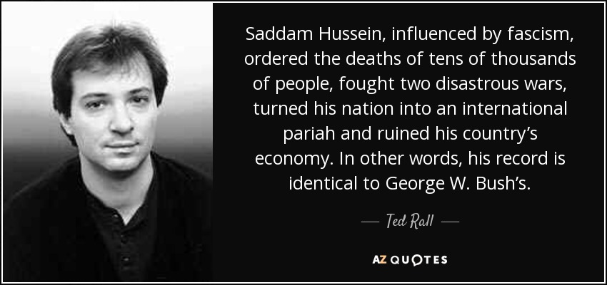 Saddam Hussein, influenced by fascism, ordered the deaths of tens of thousands of people, fought two disastrous wars, turned his nation into an international pariah and ruined his country’s economy. In other words, his record is identical to George W. Bush’s.