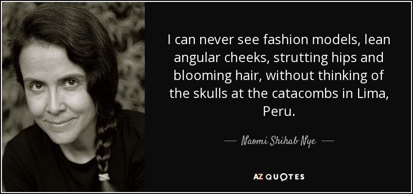 I can never see fashion models, lean angular cheeks, strutting hips and blooming hair, without thinking of the skulls at the catacombs in Lima, Peru.