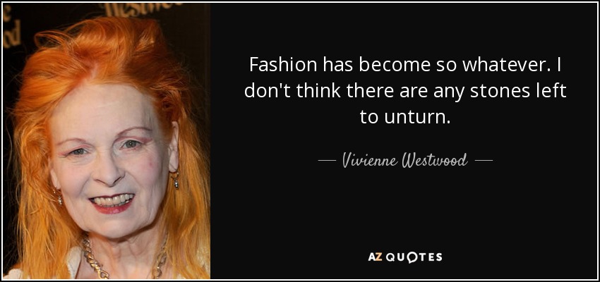 Fashion has become so whatever. I don't think there are any stones left to unturn.