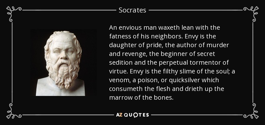An envious man waxeth lean with the fatness of his neighbors. Envy is the daughter of pride, the author of murder and revenge, the beginner of secret sedition and the perpetual tormentor of virtue. Envy is the filthy slime of the soul; a venom, a poison, or quicksilver which consumeth the flesh and drieth up the marrow of the bones.