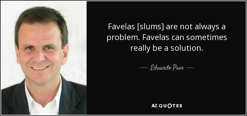 Favelas [slums] are not always a problem. Favelas can sometimes really be a solution.