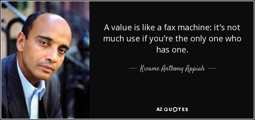 A value is like a fax machine: it’s not much use if you’re the only one who has one.