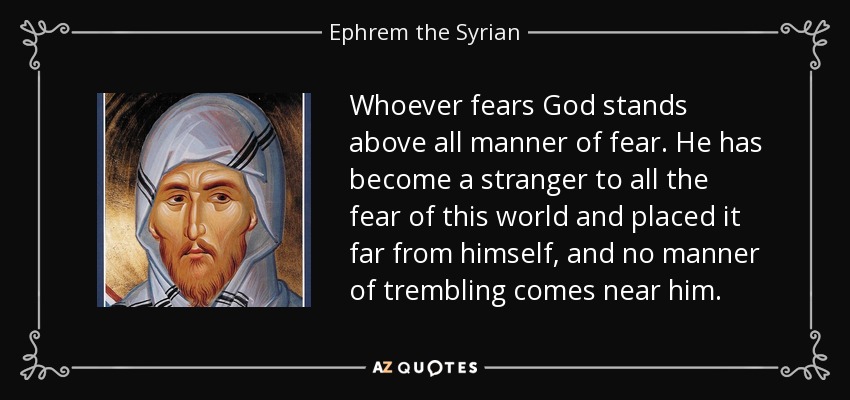 Whoever fears God stands above all manner of fear. He has become a stranger to all the fear of this world and placed it far from himself, and no manner of trembling comes near him.