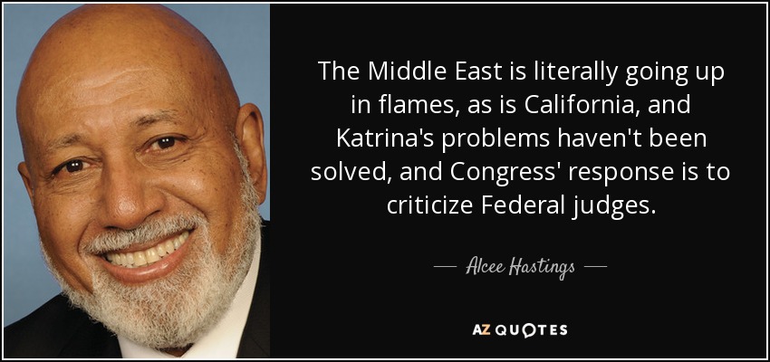 The Middle East is literally going up in flames, as is California, and Katrina's problems haven't been solved, and Congress' response is to criticize Federal judges.