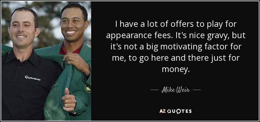 I have a lot of offers to play for appearance fees. It's nice gravy, but it's not a big motivating factor for me, to go here and there just for money.