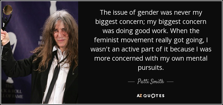 The issue of gender was never my biggest concern; my biggest concern was doing good work. When the feminist movement really got going, I wasn't an active part of it because I was more concerned with my own mental pursuits.