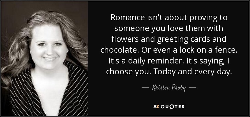 Romance isn't about proving to someone you love them with flowers and greeting cards and chocolate. Or even a lock on a fence. It's a daily reminder. It's saying, I choose you. Today and every day.
