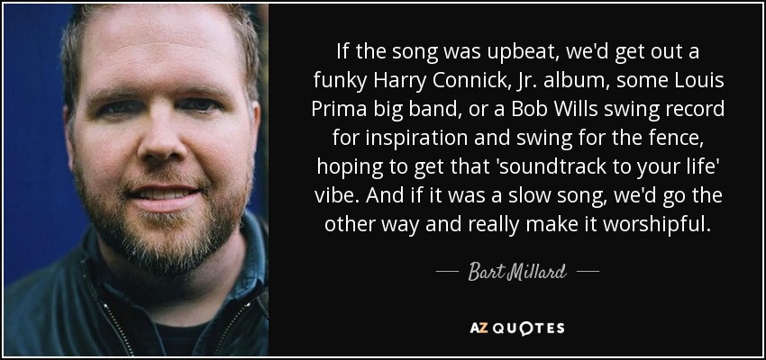 If the song was upbeat, we'd get out a funky Harry Connick, Jr. album, some Louis Prima big band, or a Bob Wills swing record for inspiration and swing for the fence, hoping to get that 'soundtrack to your life' vibe. And if it was a slow song, we'd go the other way and really make it worshipful.