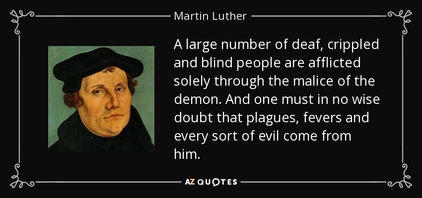 A large number of deaf, crippled and blind people are afflicted solely through the malice of the demon. And one must in no wise doubt that plagues, fevers and every sort of evil come from him.