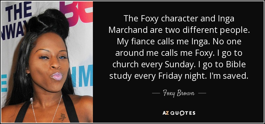 The Foxy character and Inga Marchand are two different people. My fiance calls me Inga. No one around me calls me Foxy. I go to church every Sunday. I go to Bible study every Friday night. I'm saved.