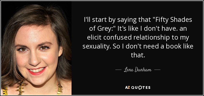I'll start by saying that "Fifty Shades of Grey:" It's like I don't have. an elicit confused relationship to my sexuality. So I don't need a book like that.