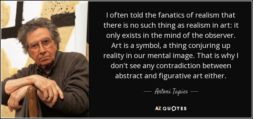 I often told the fanatics of realism that there is no such thing as realism in art: it only exists in the mind of the observer. Art is a symbol, a thing conjuring up reality in our mental image. That is why I don't see any contradiction between abstract and figurative art either.