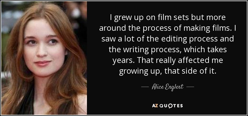I grew up on film sets but more around the process of making films. I saw a lot of the editing process and the writing process, which takes years. That really affected me growing up, that side of it.