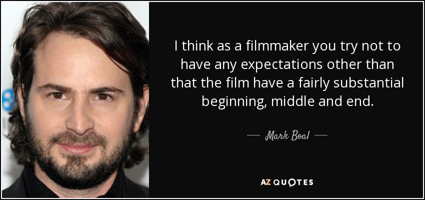 I think as a filmmaker you try not to have any expectations other than that the film have a fairly substantial beginning, middle and end.