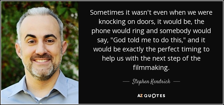 Sometimes it wasn't even when we were knocking on doors, it would be, the phone would ring and somebody would say, "God told me to do this," and it would be exactly the perfect timing to help us with the next step of the filmmaking.