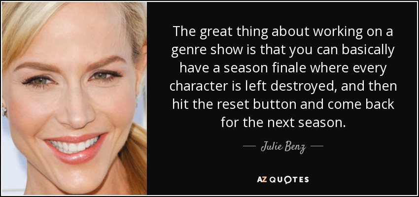 The great thing about working on a genre show is that you can basically have a season finale where every character is left destroyed, and then hit the reset button and come back for the next season.